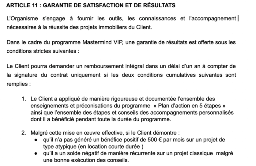 Il y a une garantie de satisfaction ou remboursé pour la formation de Mon Plan Immo.