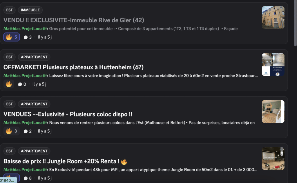 • des groupes régionaux WhatsApp (apéros immo mensuels, mises en relation locales, partage de bonnes pratiques)