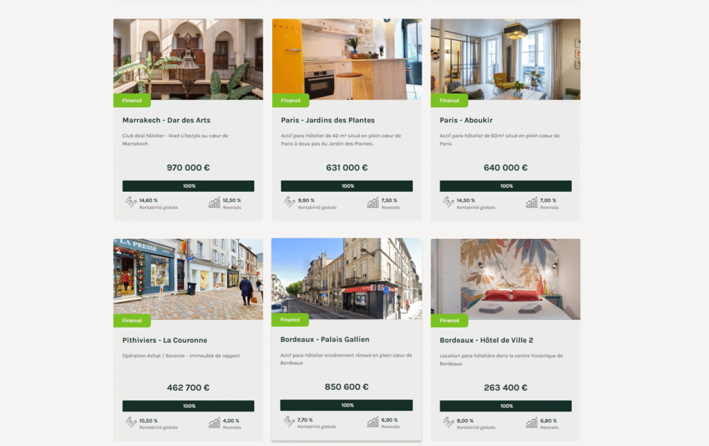 - La possibilité d’investir dans des appartements, des colivings, des co-promotions et des hôtels